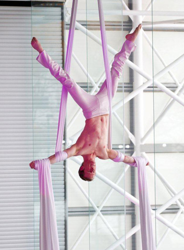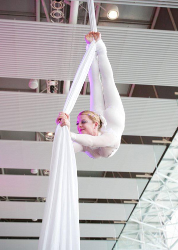 James and Nicole present a visually stunning aerial silks act, which is performed as a synchronised duet. The colour of silks and costumes can be changed to fit any theme.